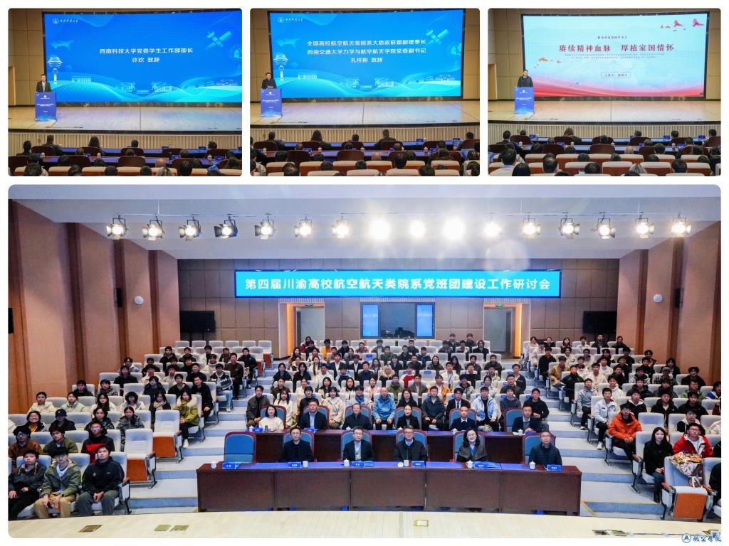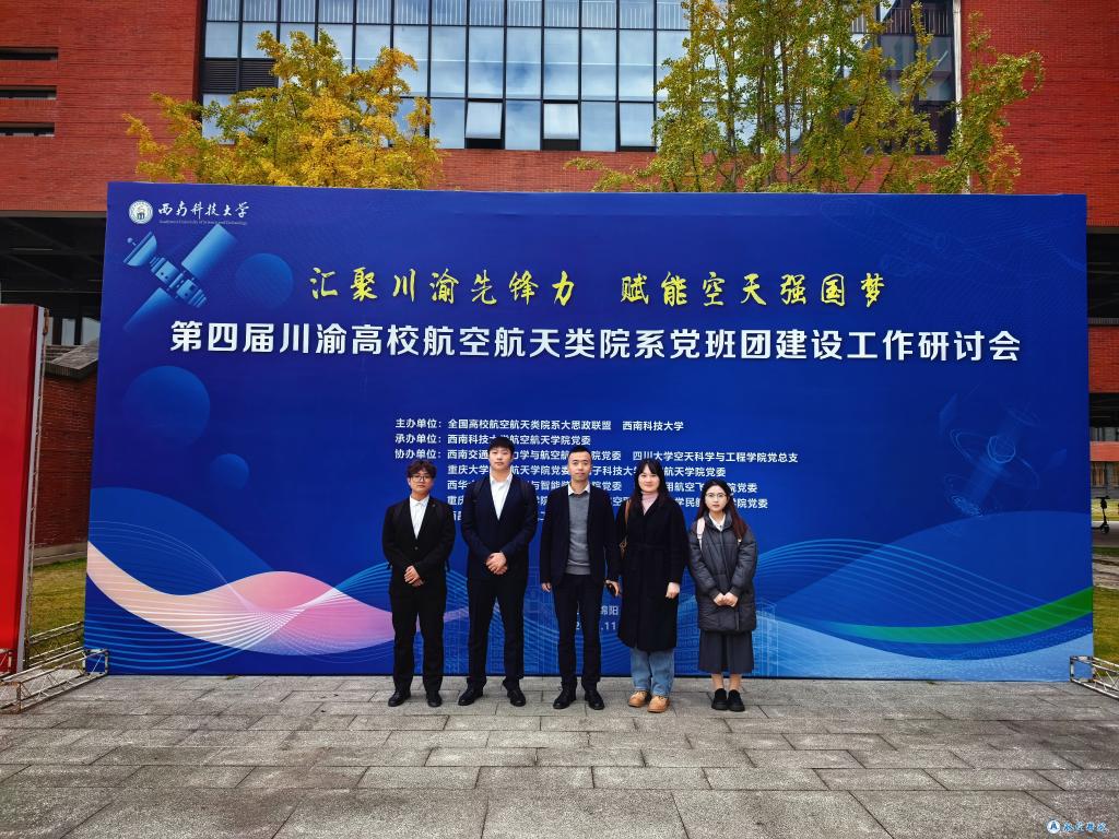 2025年11月22日,第四届川渝高校航空航天类院系党班团建设研讨会在西南科技大学隆重举行。本次研讨会由全国高校航空航天类院系大思政联盟与西南科技大学联合主办,西南科技大学航空航天学院党委具体承办,川渝地区10所高校航空航天类院系协同协办,以“汇聚川渝先锋力,赋能空天强国梦”为主题,聚焦党班团组织建设与“国防思政”“产教融合”的深度融合路径,为区域航空航天人才培养注入强劲动能。学院党委副书记杨登陆带队,辅导员祝孟如、航模队队长兼2023级辅导助理陈轶想、学生会主席韦淇、飞行器设计与工程专业2402班班长周鑫谊参加了此次交流会。