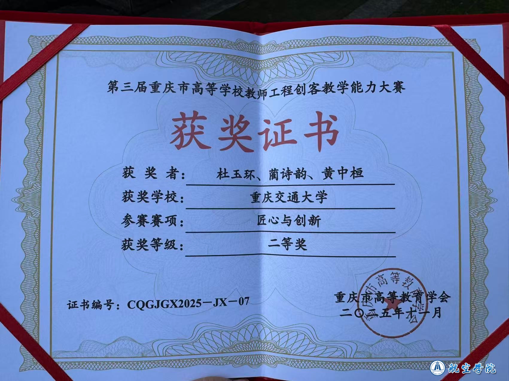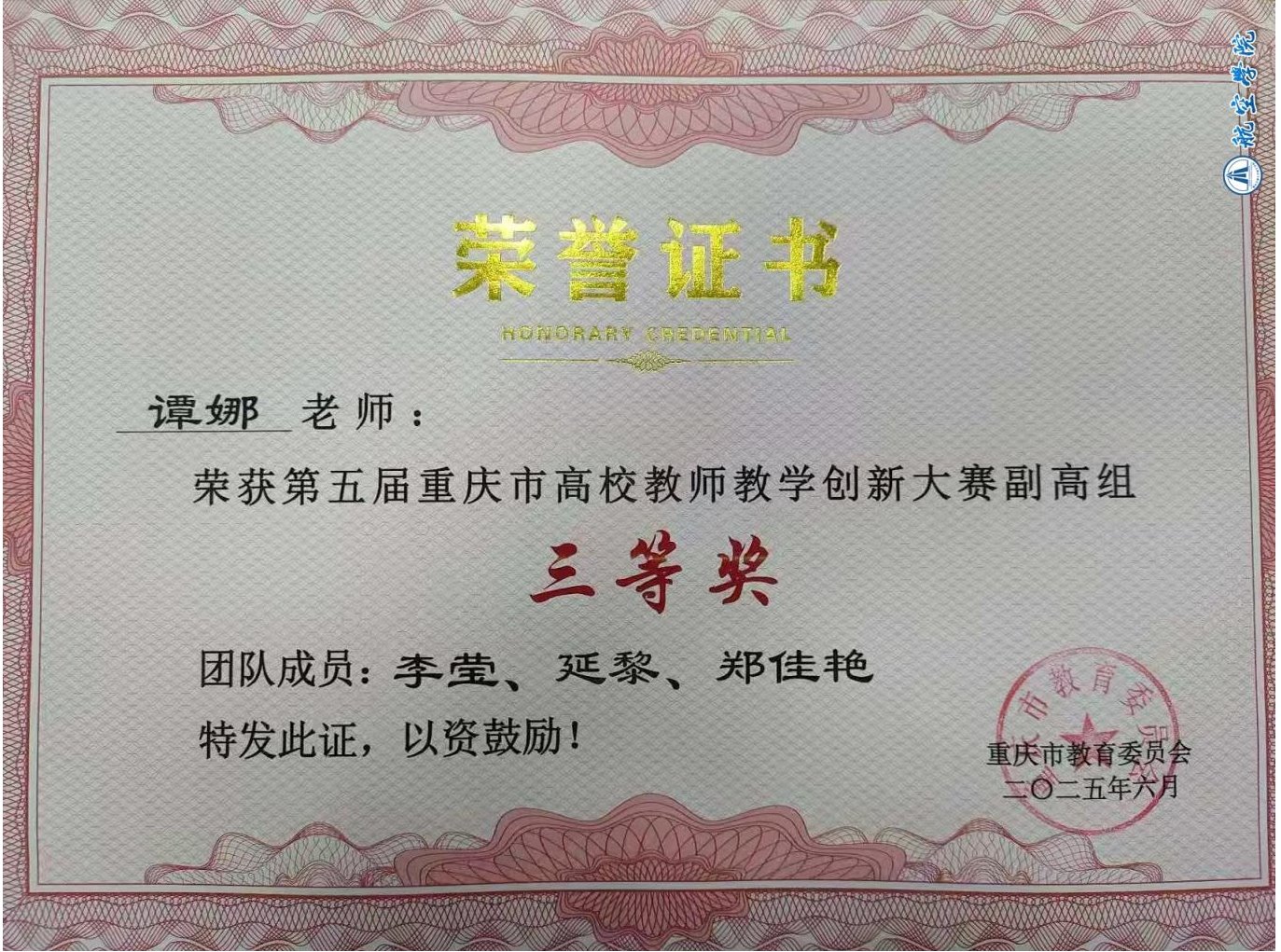 与此同时,学院其他教师也在省市级竞赛中斩获殊荣:谭娜老师教学成果丰硕,一人独揽两项大奖,分别获得第五届重庆市高校教师教学创新大赛三等奖和重庆市2025年本科高校微课教学比赛三等奖;杜玉环老师在强调实践与创新能力的第三届重庆市高等学校教师工程创客教学能力大赛中,凭借出色的工程实践教学案例荣获二等奖。