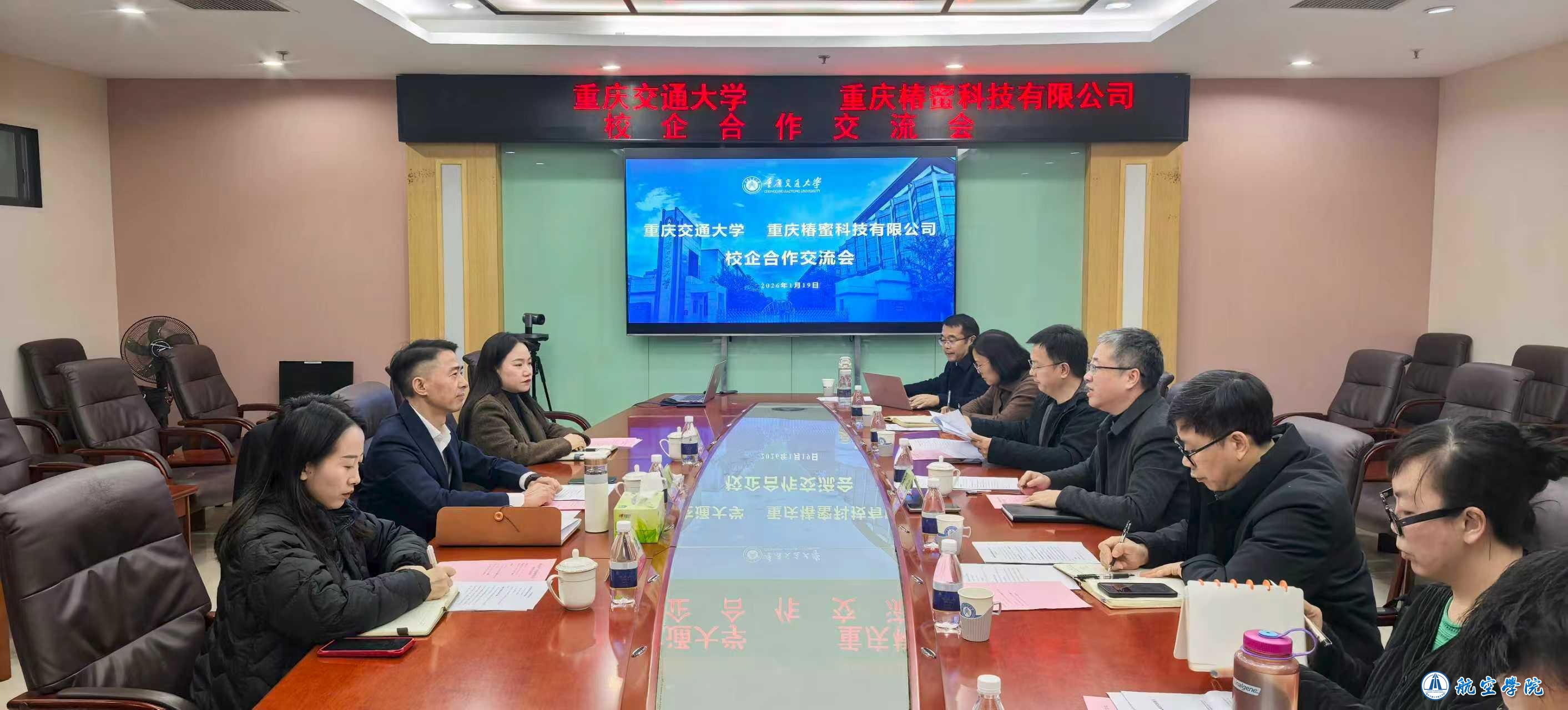 1月19日,重庆椿蜜科技有限公司(以下简称“椿蜜科技”)杨春董事长一行到访重庆交通大学,双方就绿色经济、新能源智慧运力、产教融合等议题进行交流洽谈。校党委副书记张铭,教务处、交通运输学院、信息科学与工程学院、航空学院、智慧城市学院及未来土木科技研究院科研团队参加会谈。